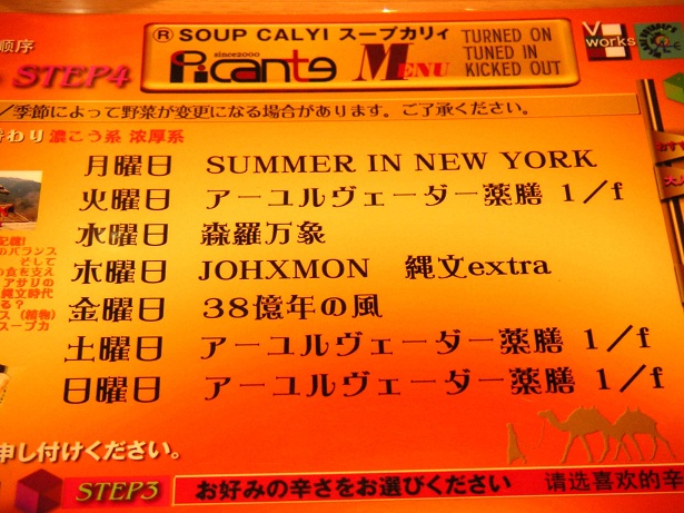 スープの名前とか、辛さのレベルのネーミングとか・・・・・・。