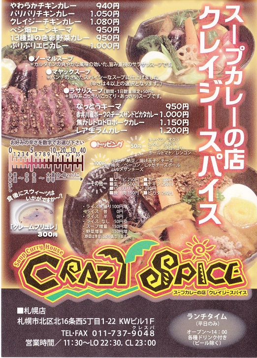 本日のお店は、CRAZY SPICE 北16条店さんです。