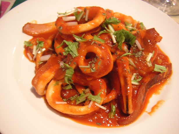 友人がワインのお供に頼んだ真イカのトマトソース炒め ¥500