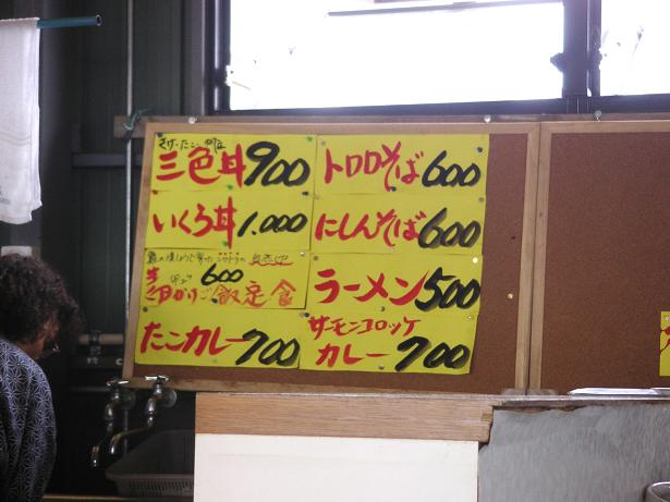 あるのは、食事をするところと、魚屋さんと八百屋さん。