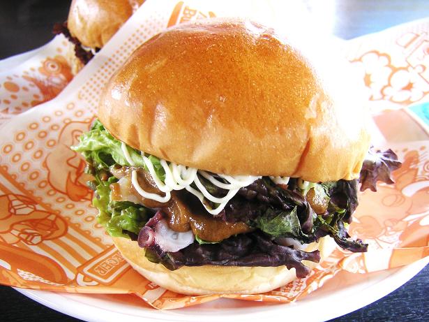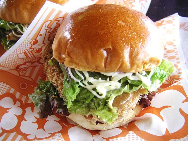 こっちがやまたまさんのオリジナルのラブラブサーモンコロッケバーガー、550円。